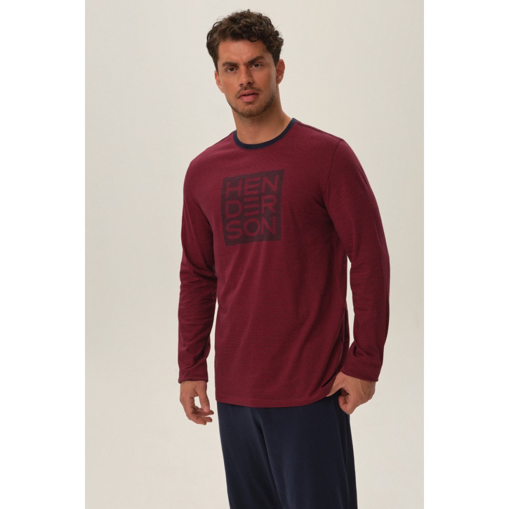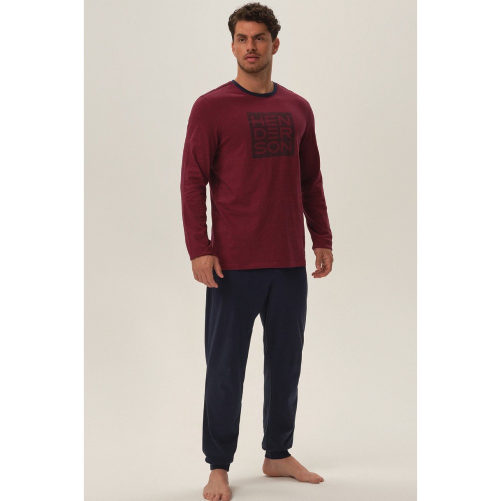 Чоловіча бавовняна піжама. Довгі штани, однотонна футболка з довгими рукавами.