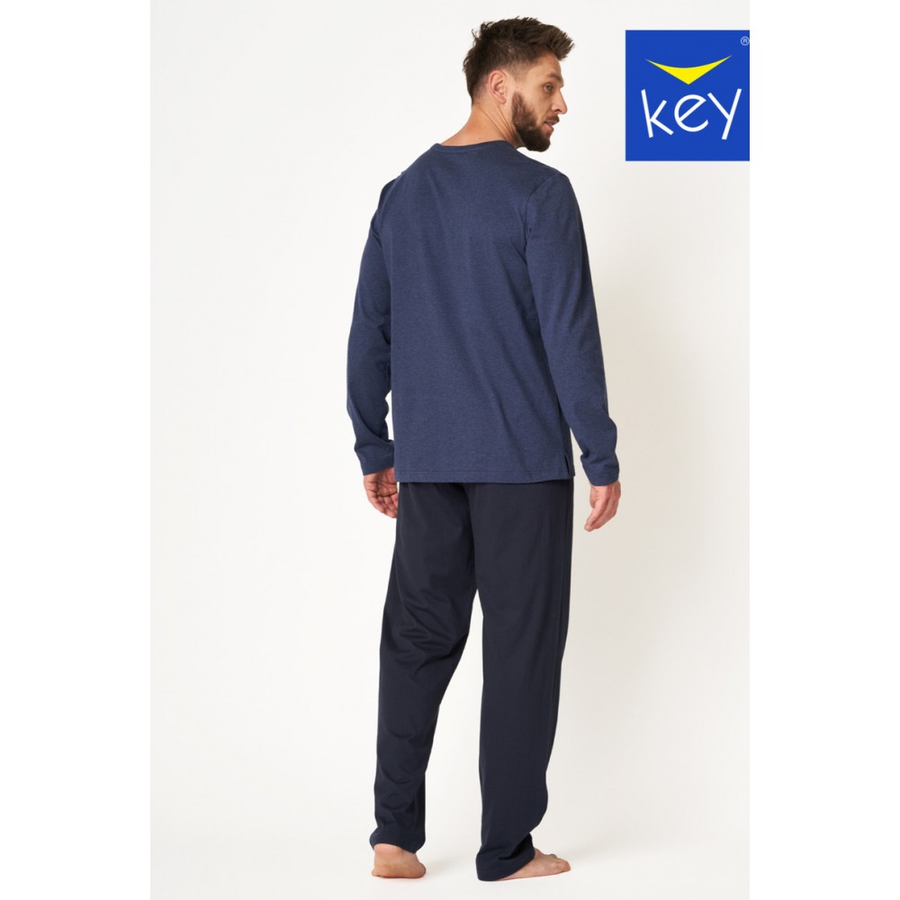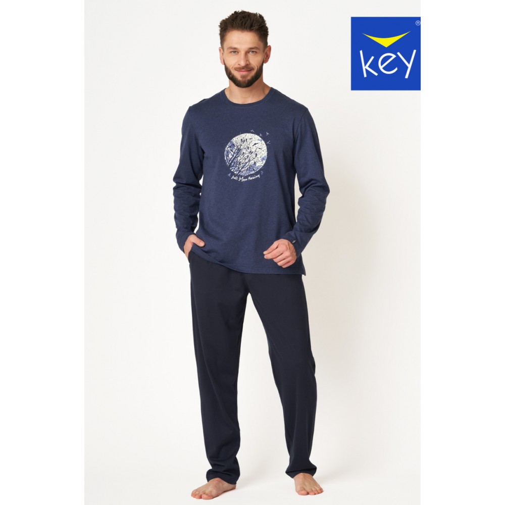Тепла чоловіча піжама, що поєднує в собі меланжевий светр та бавовняні штани. Довгий, прямий крій, зручний еластичний пояс та кишені. Светр з довгими рукавами та принтом спереду.