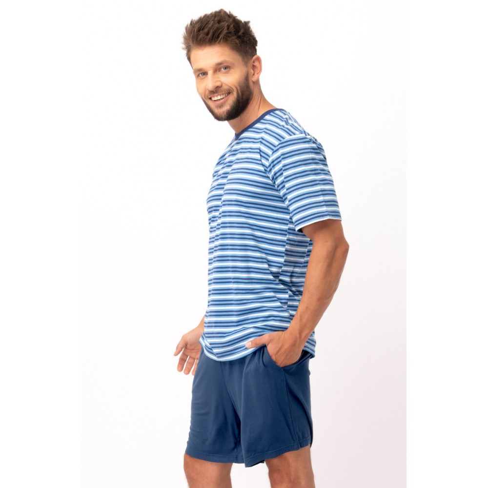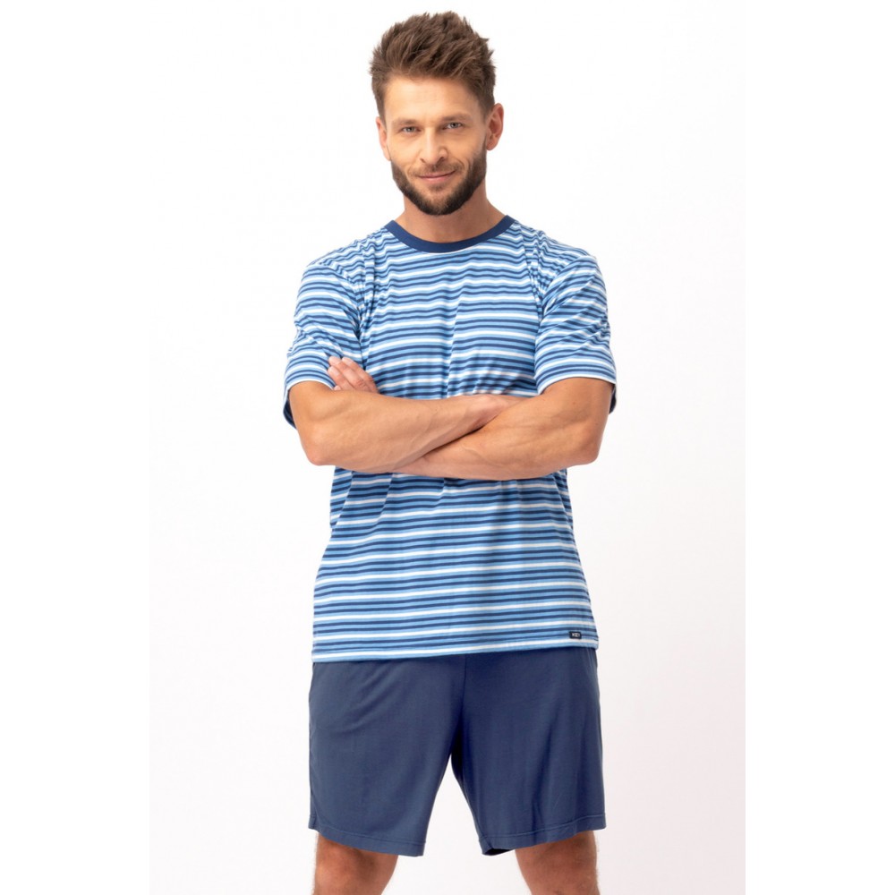 Чоловіча піжама MNS 364 A25 є синонімом комфорту та стилю в затишку вашого дому. Виготовлена зі 100% натуральної бавовни, вона забезпечує комфорт та повітропроникність протягом усієї ночі. Короткі рукави ідеально підходять для теплих днів, гарантуючи свободу рухів та легкий комфорт. Класичний крій та міцна обробка роблять її ідеальним вибором для кожної ночі. Насолоджуйтесь максимальним комфортом та елегантним виглядом, навіть під час сну!
