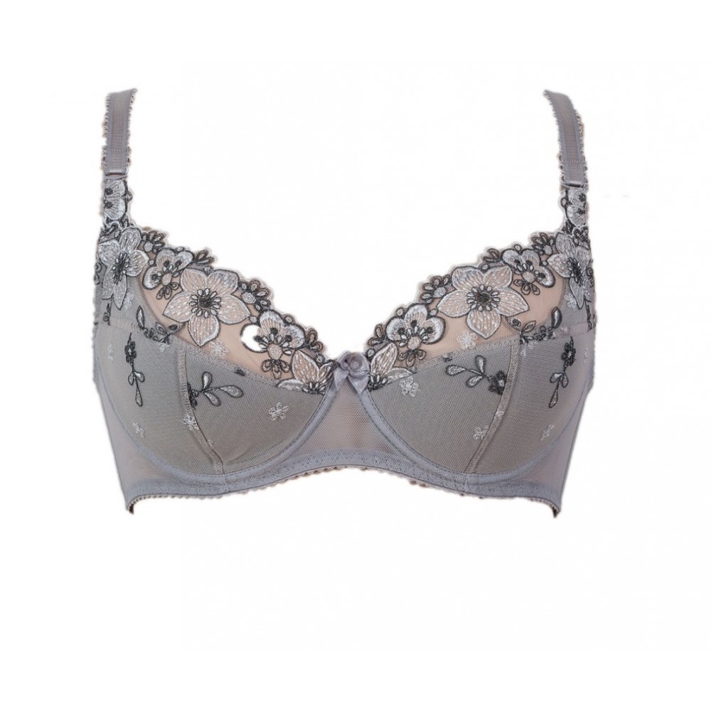 Бюстгальтер Biggi Devi. Цей дизайн ідеально підходить для жінок з пишнішим бюстом. Чашечки напівз підкладкою та прикрашені красивою вишивкою. Спинка виготовлена з щільного трикотажу. Бічні сторони посилені вертикальною кісточкою. Цей бюстгальтер ідеально моделює та піднімає більший бюст.