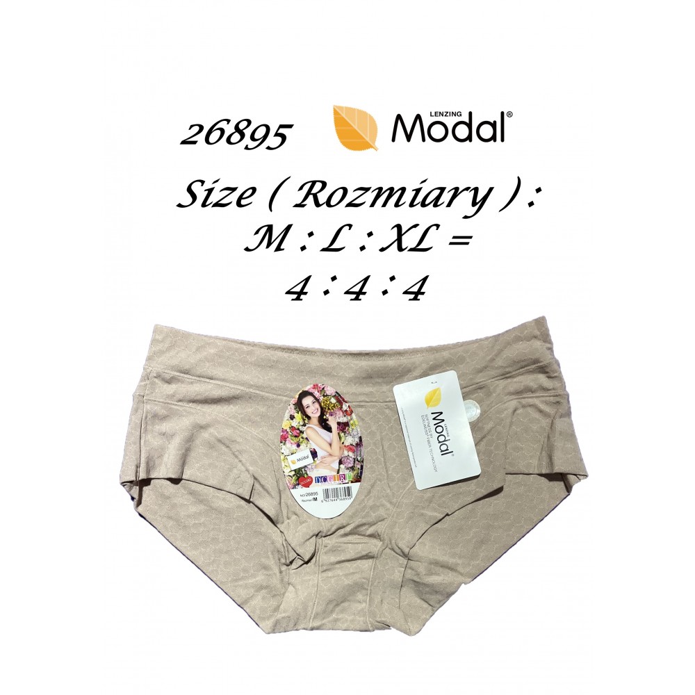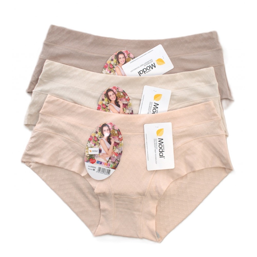 Жіночі трусики-бікіні міді. З високою посадкою з боків, виготовлені з м'якого матеріалу. Упаковані в упаковки по 12 штук різних розмірів та кольорів. Склад: 89,5% модал, 10,5% спандекс