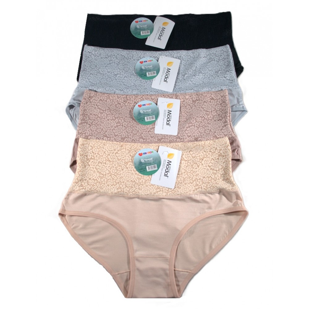 Жіночі труси з м'якого модалу. Високий крій, ідеально сидять. Упаковка з 12 штук. Різні кольори та розміри (L, XL, 2XL, 3XL). Склад: 94% модал, 6% еластан.