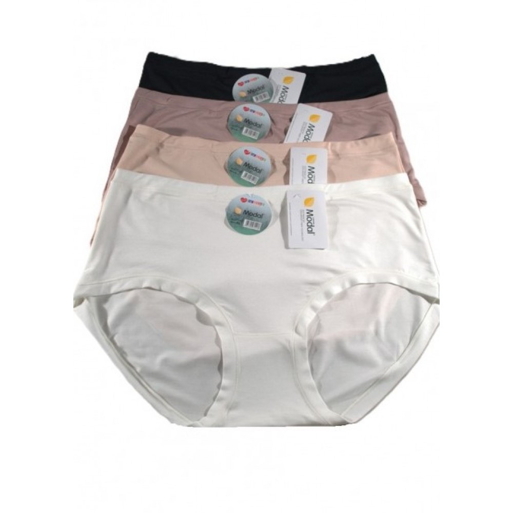 Жіночі труси з м'якого модалу. Ідеально прилягають до фігури. 12 штук в упаковці. Різні розміри (M, L, XL, 2XL). Склад: 94% модал, 6% еластан.