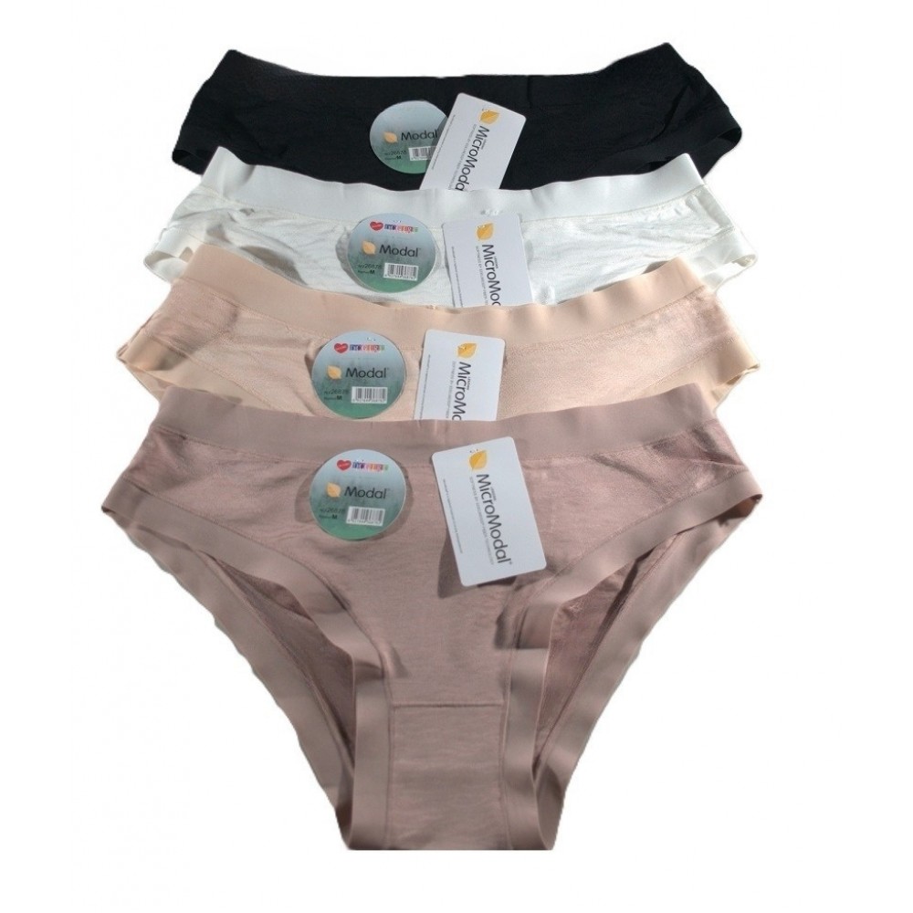 Жіночі труси з м'якого модалу. Упаковка з 12 штук різних розмірів (L, XL, XXL) та кольорів. Склад: 89,5% модал, 10,5% спандекс.