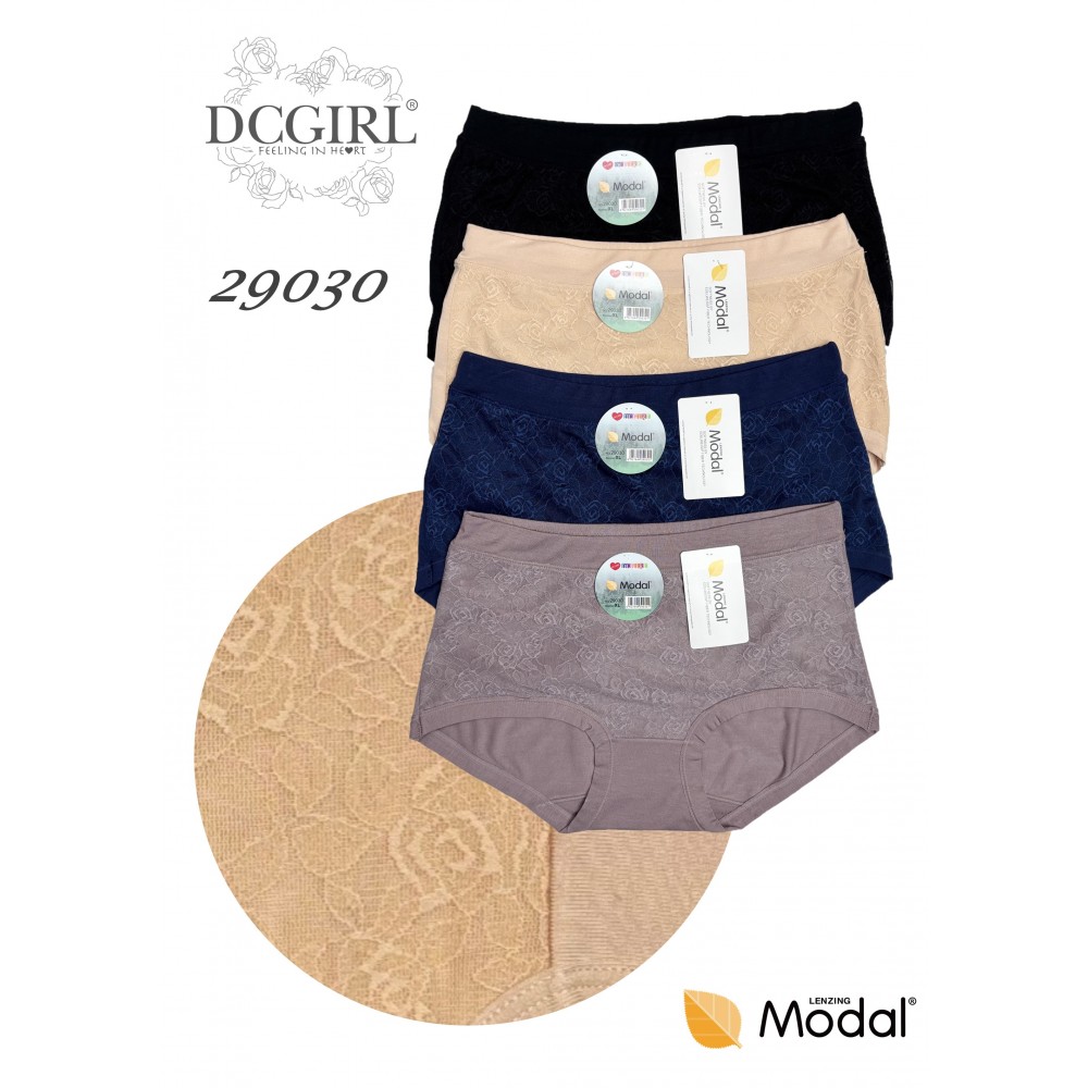 Жіночі трусики з м'якого модалу. Передня частина оздоблена еластичною мереживною вставкою з квітковим мотивом. Задня частина гладка. Вони дуже ніжні до шкіри. Упаковані по 12 штук. Різні розміри (XL, XXL, XXXL). Склад: 94% модал, 6% еластан.