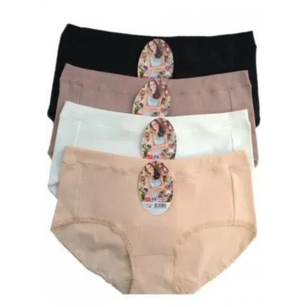 Жіночі труси з м'якої бавовни. Упаковка з 12 шт. у міксі кольорів. Розміри в упаковці (M, L, XL). Склад: 95% бавовна, 5% еластан.