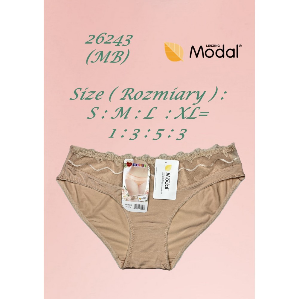 Жіночі трусики з ніжного, приємного для шкіри модалу. Мереживна деталь спереду. Упаковка з 12 шт. розміру M. Склад: 94% модал, 6% еластан.