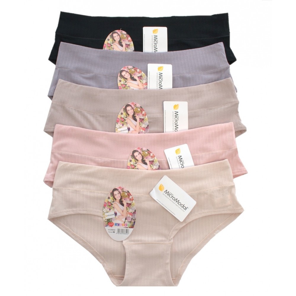 Жіночі труси з м'якого модалу. Упаковка з 12 штук різних кольорів. Склад: 89,5% мікромодал, 10,5% еластан.