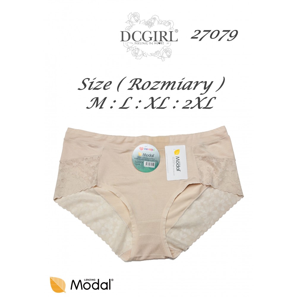 Жіночі труси з високоякісного модалу. Декоровані ніжною вставкою на стегнах. Надзвичайно м'які та приємні на дотик. Упаковані в упаковки по 12 штук у міксі кольорів та розмірів (M, L, XL, XXL). Склад: 94% модал, 6% еластан.
