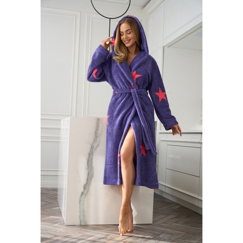 Жіночий довгий халат 2593 – це ідеальне поєднання стилю, комфорту та приємного тепла. Виготовлений з м’якої, обволікаючої трикотажної тканини , він ідеально підходить для будь-якої пори року – від прийняття ванни до вечірнього відпочинку вдома. Його відмінною рисою є модний візерунок з великими зірками , який надає халату сучасного, молодіжного вигляду. Халат має подвійний утеплений капюшон , практичні кишені та зав’язку на талії , що забезпечує комфортну посадку. Зручний крій та м’яка текстура змусять вас захотіти його зняти!