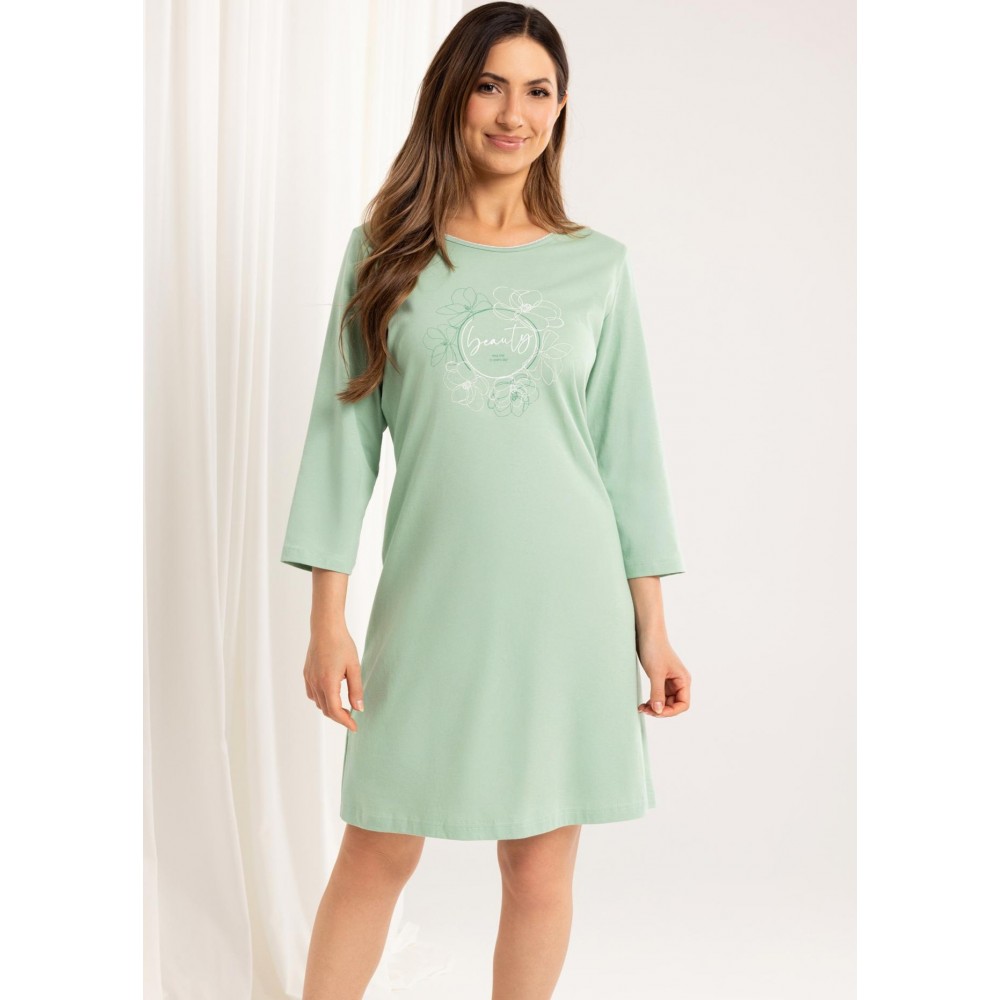 Жіноча бавовняна сорочка з рукавами 3/4 та круглим вирізом горловини. Спереду прикрашений принтом. Довжина: трохи вище коліна. Склад: 100% бавовна.