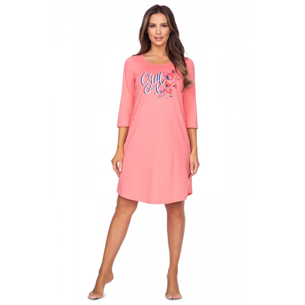 Жіноча сорочка з рукавами 3/4, виготовлена з високоякісної бавовни. Має ніжний принт спереду, круглий виріз горловини та довжину до коліна. Склад: 100% бавовна.