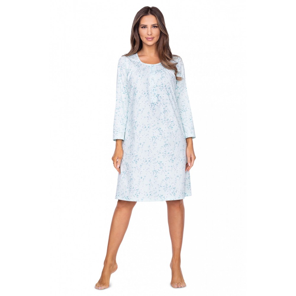 Жіноча сорочка з високоякісної бавовни. Має виріз горловини на ґудзиках, м'яко зібрану кокетку та довгі рукави. Склад: 100% бавовна.