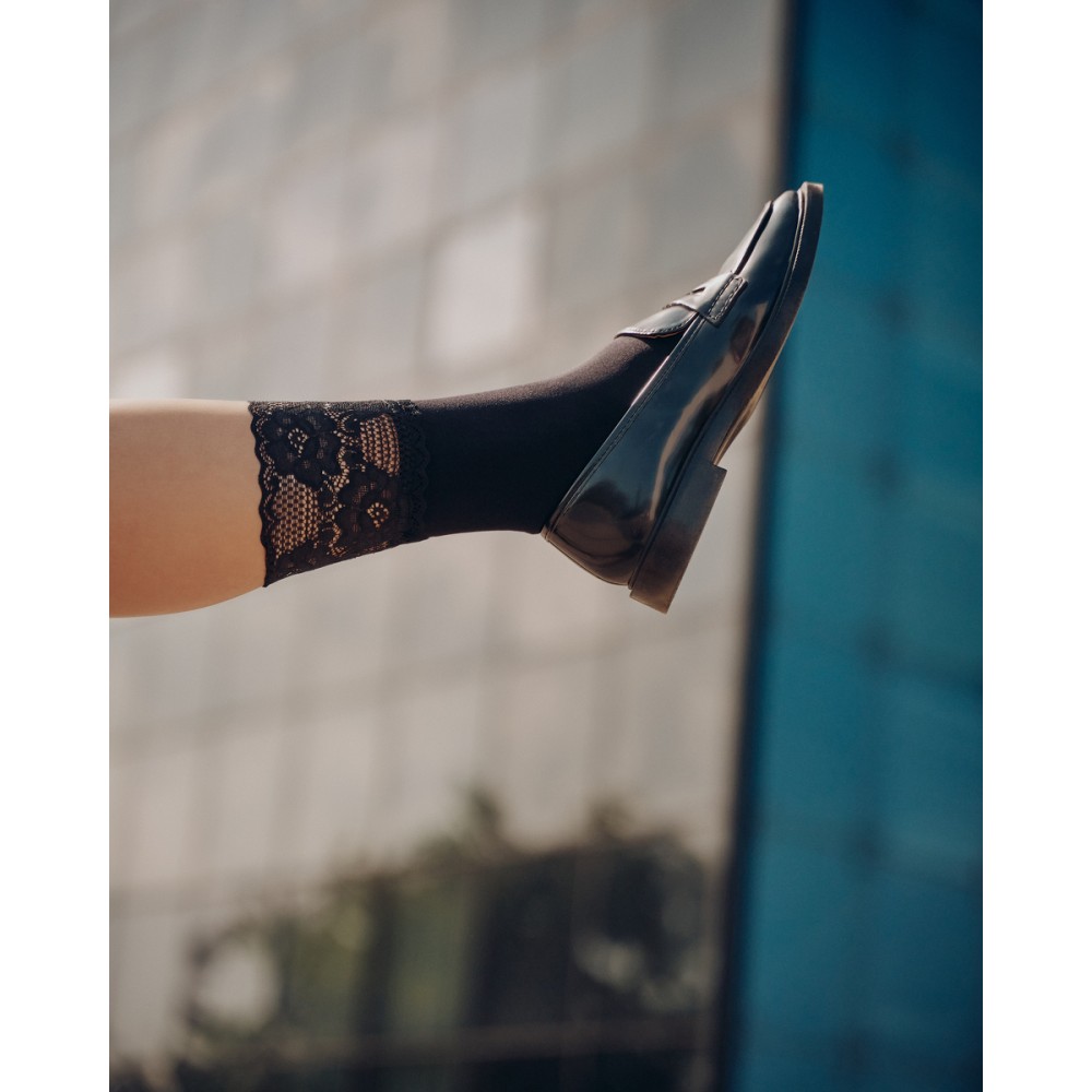 Барвисті жіночі шкарпетки щільністю 20 деньє з еластичних волокон, що приймають форму стопи. Посилені п'ята та носок. Склад: 99% поліамід, 1% еластан.