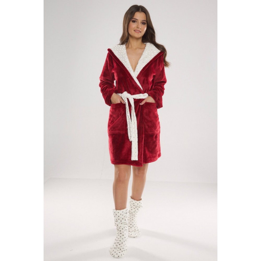 - Жіночий халат з капюшоном з м'якої трикотажної тканини. Зав'язується на талії та має кишені. Склад: 100% поліестер..