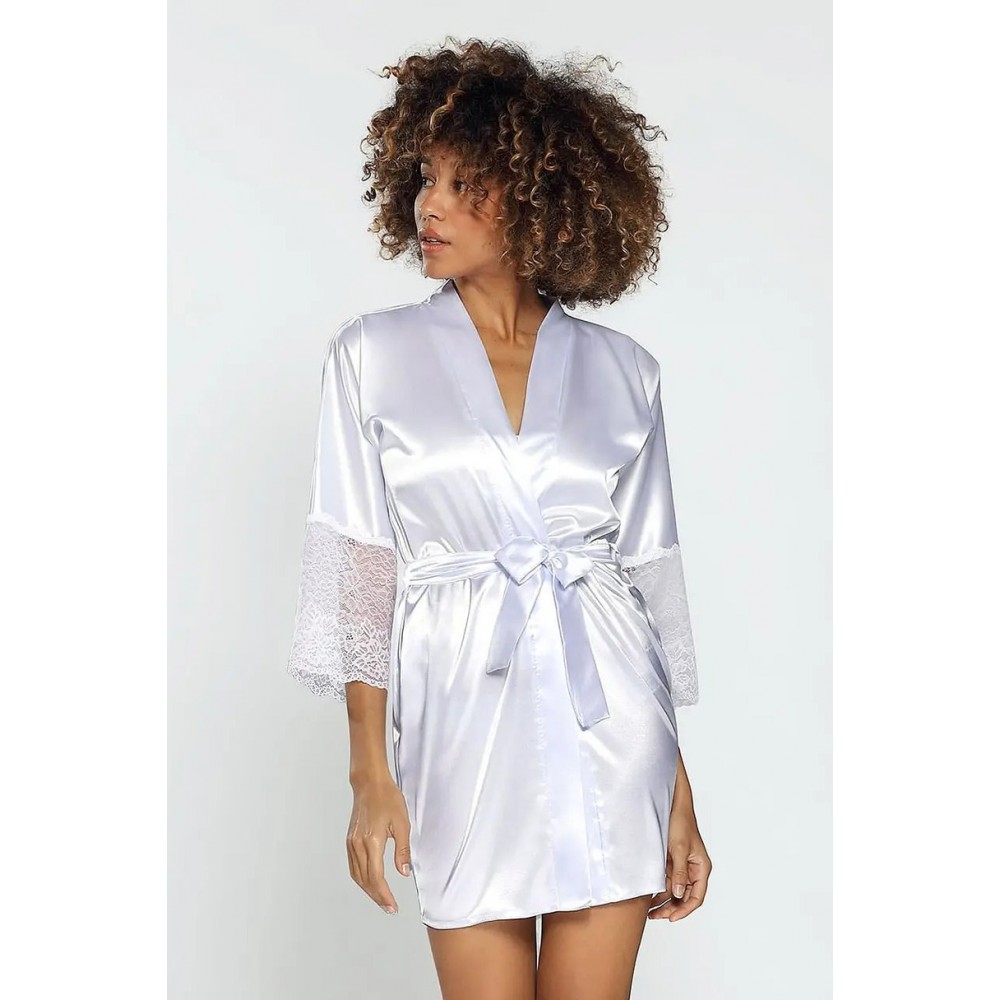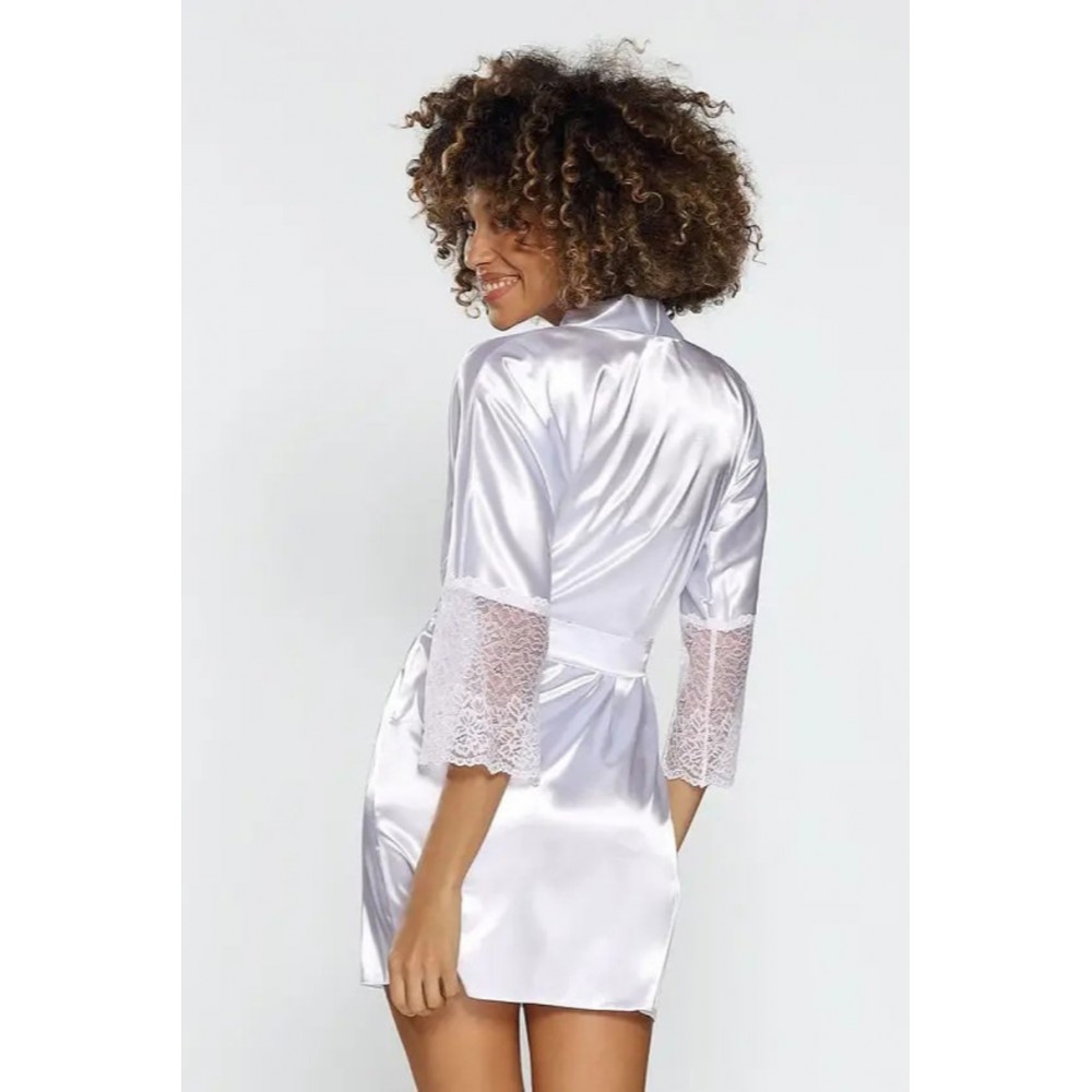Пеньюар з ніжного атласу, з рукавами 3/4, зав'язаними на талії. Манжети оздоблені ефектним квітковим мереживом.