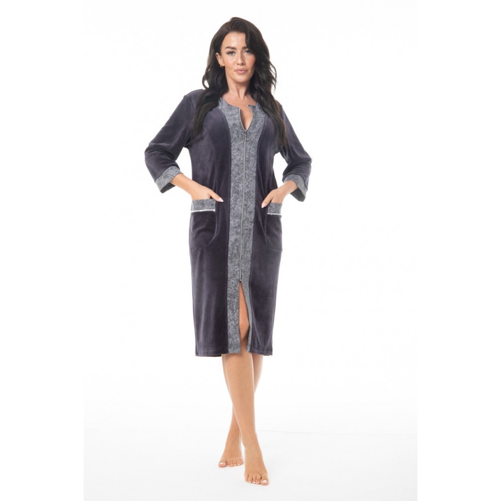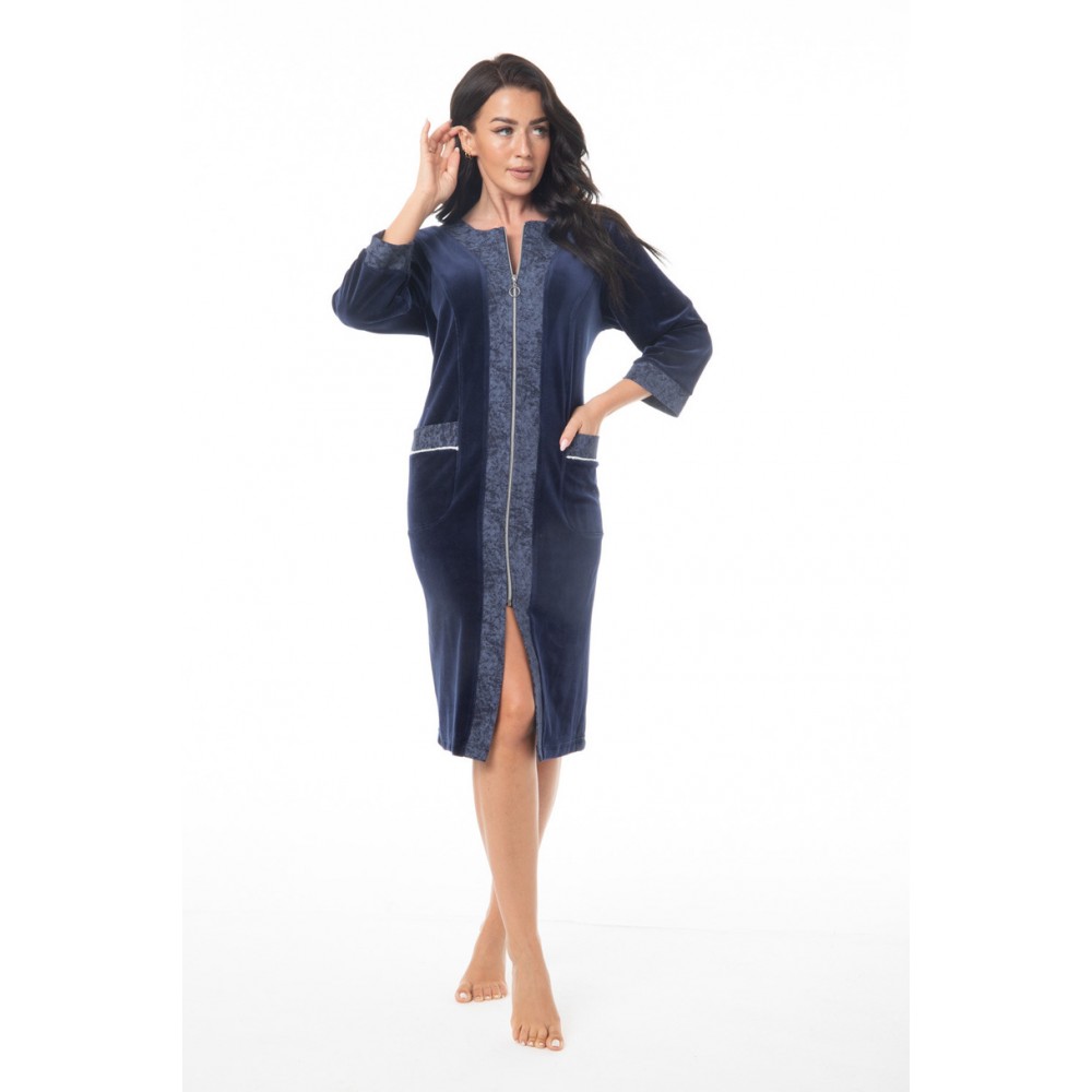 Жіночий халат FR-404 від Dorota поєднує в собі стиль, комфорт та функціональність, розроблений для жінок, які цінують комфорт та елегантність у своєму домі. Виготовлений з м'якої, зручної бавовни з домішкою поліестеру , він забезпечує повітропроникність та м'якість, ідеально підходить для прохолодних ранків та вечорів. Застібка-блискавка забезпечує швидке та легке одягання, а рукави довжиною 3/4 та поділ до коліна роблять цей халат придатним для носіння цілий рік. Практичні кишені на стегнах є додатковим бонусом. FR-404 – це незамінний елемент домашнього гардеробу, що поєднує комфорт із жіночним силуетом.