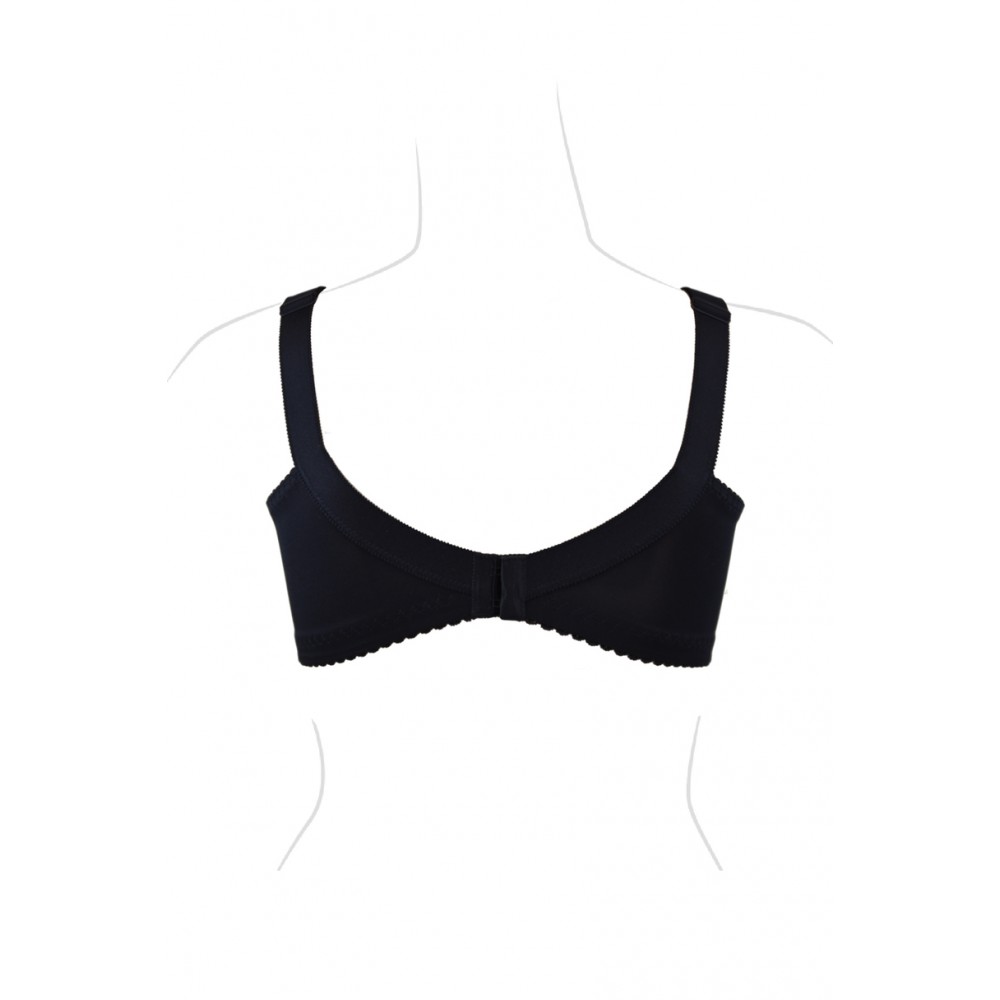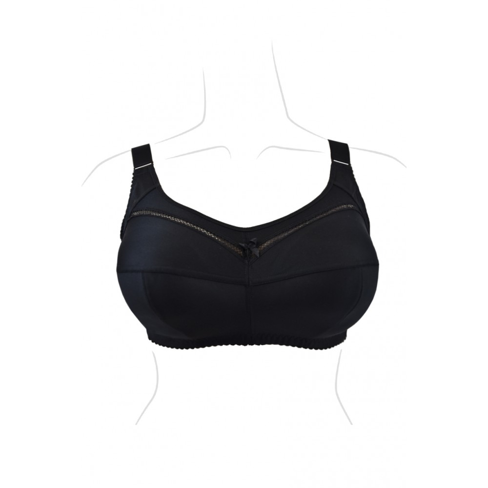 М'який бюстгальтер без кісточок для жінок з великими грудьми. Повне покриття. Зручні, широкі бретельки, регулюються спереду. Нижні чашечки та баска виготовлені з гладкої, міцної тканини, яка забезпечує ідеальний збір грудей від боків до центру та фіксує їх на місці. Внутрішня частина чашечки підкладена бавовною, що робить бюстгальтер ніжним, незважаючи на його міцну конструкцію. Верх оздоблений ніжною сіткою. Бока виготовлені з міцної тканини лайкра. Склад: 30% бавовна, 53% поліамід, 17% еластан.