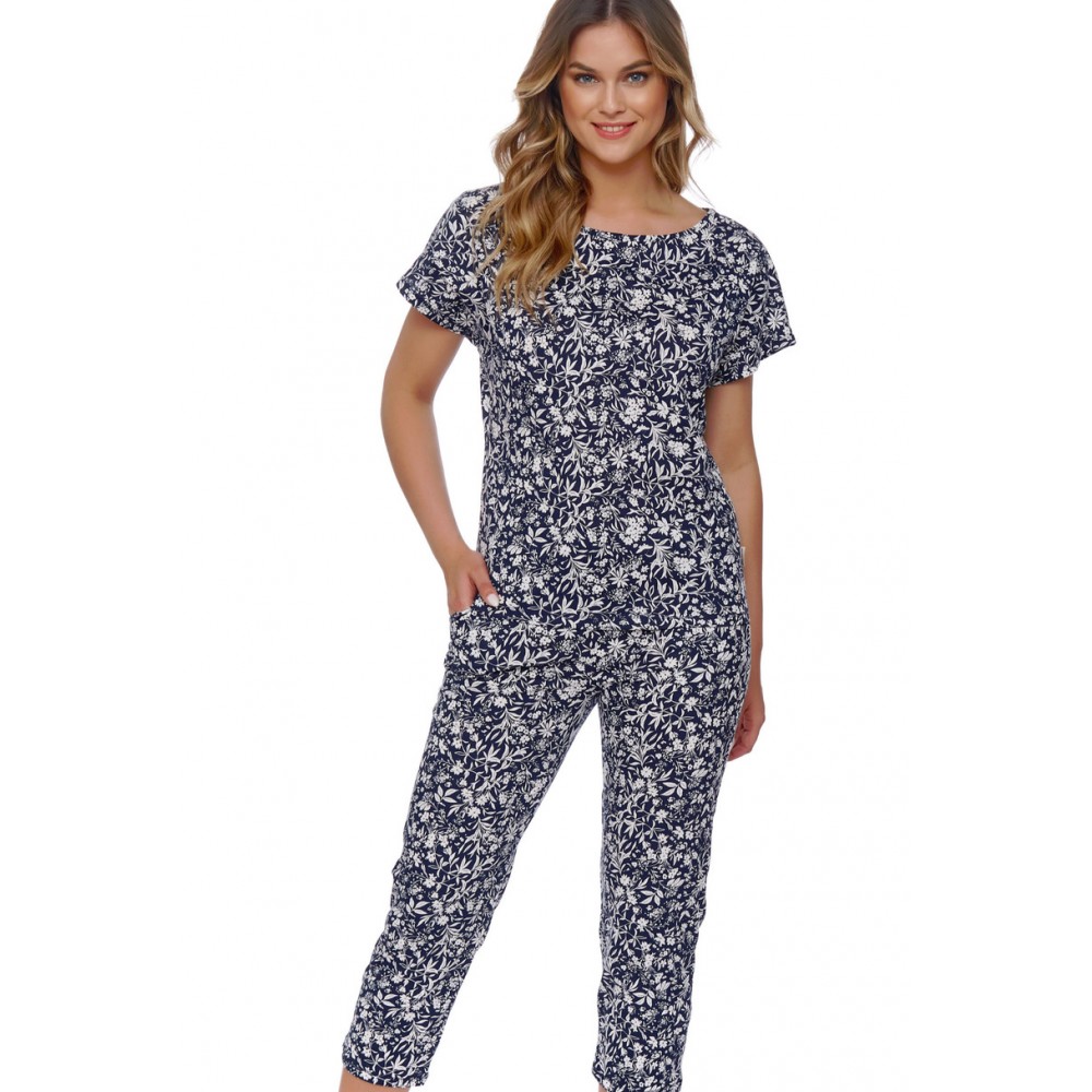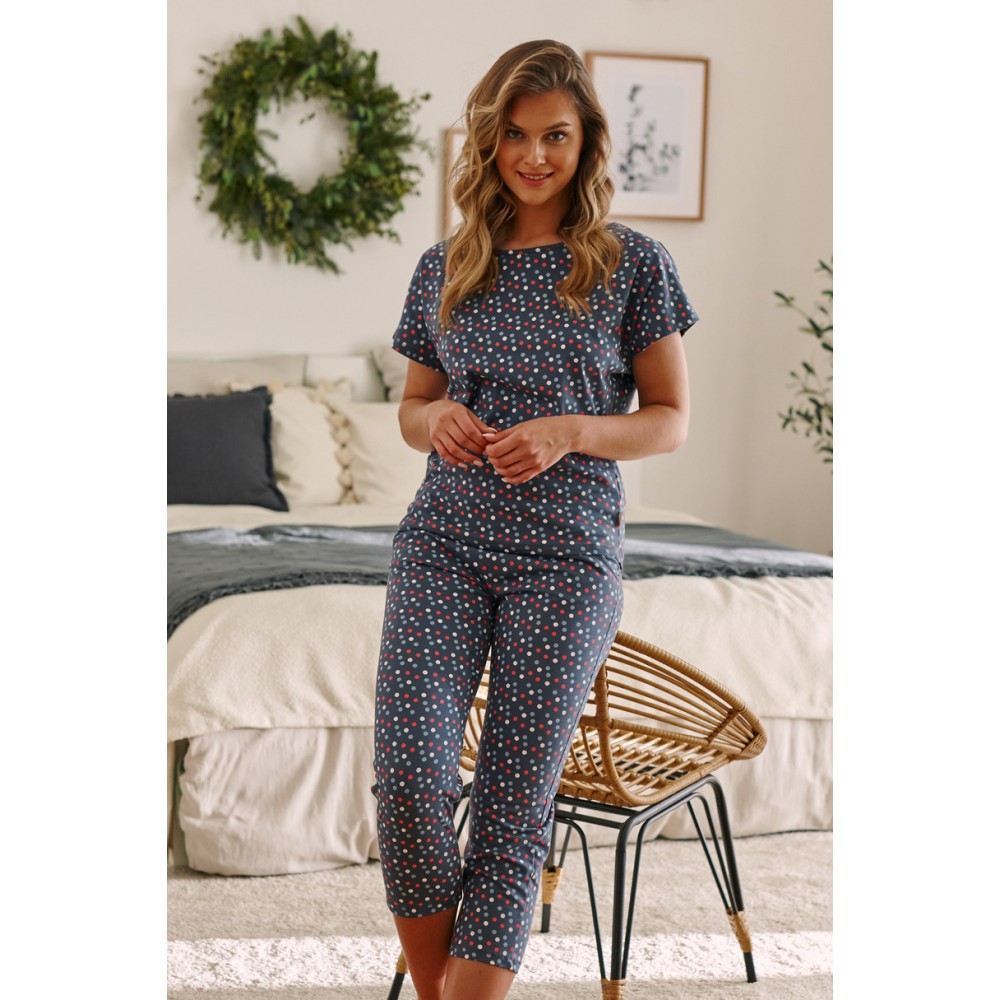 Жіноча піжама з короткими рукавами виготовлена з високоякісної бавовни. Блузка має рукави-кімоно. Штани мають довжину 7/8 та практичні кишені.