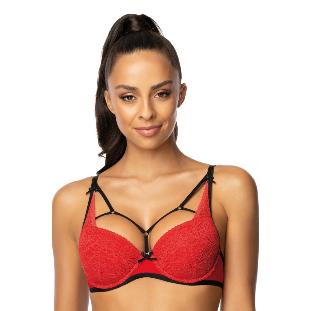 Niezwykle uroczy oraz sexy biustonosz typu push-up. Posiada koronkowe miseczki podszyte bawełną, wyjmowane wkładki push-up, ramiączka są nieodpinane.