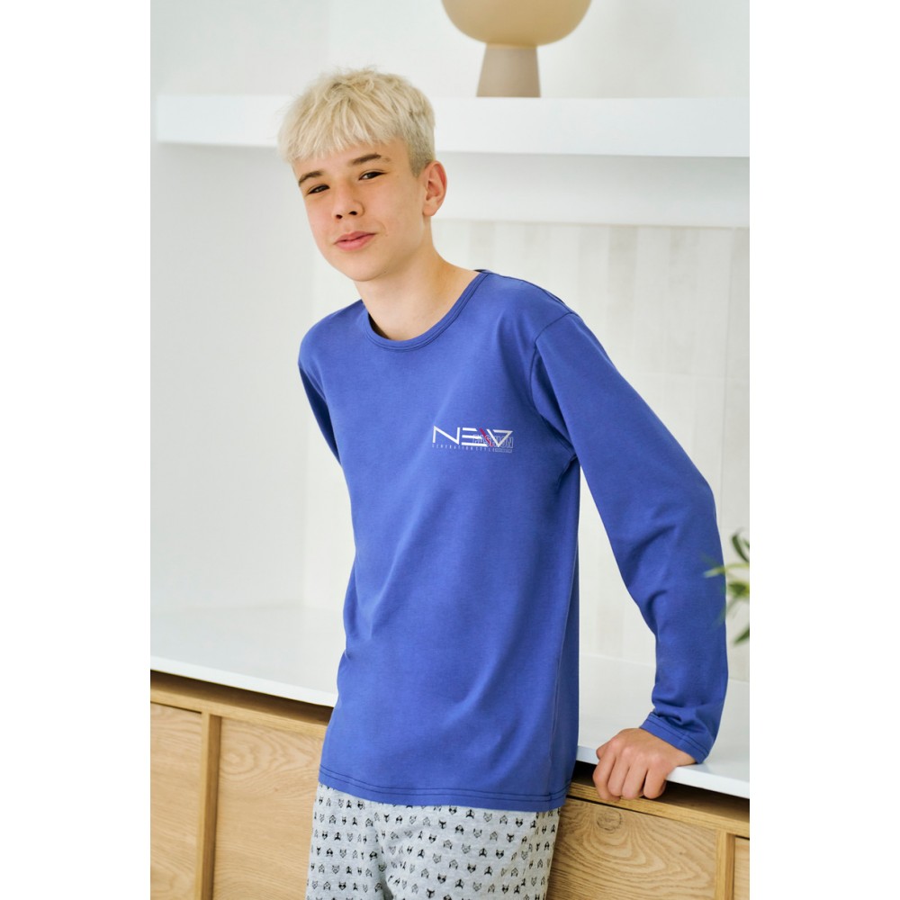 Піжама для хлопчика EMIL 3506 – ідеальний вибір для комфортного та спокійного сну хлопчиків шкільного віку. Комплект включає футболку з довгими рукавами та довгі штани з візерунком . Футболка виготовлена зі 100% м’якої, дихаючої бавовни , а її передня частина має яскравий принт , який оцінять маленькі власники. Штани виготовлені з бавовняного трикотажу з додаванням поліестеру для додаткової міцності та гнучкості. Зручний еластичний пояс забезпечує комфортну посадку, що не тисне. Піжама EMIL поєднує в собі стиль, якість та комфорт – розроблена з урахуванням щоденного комфорту вашої дитини.