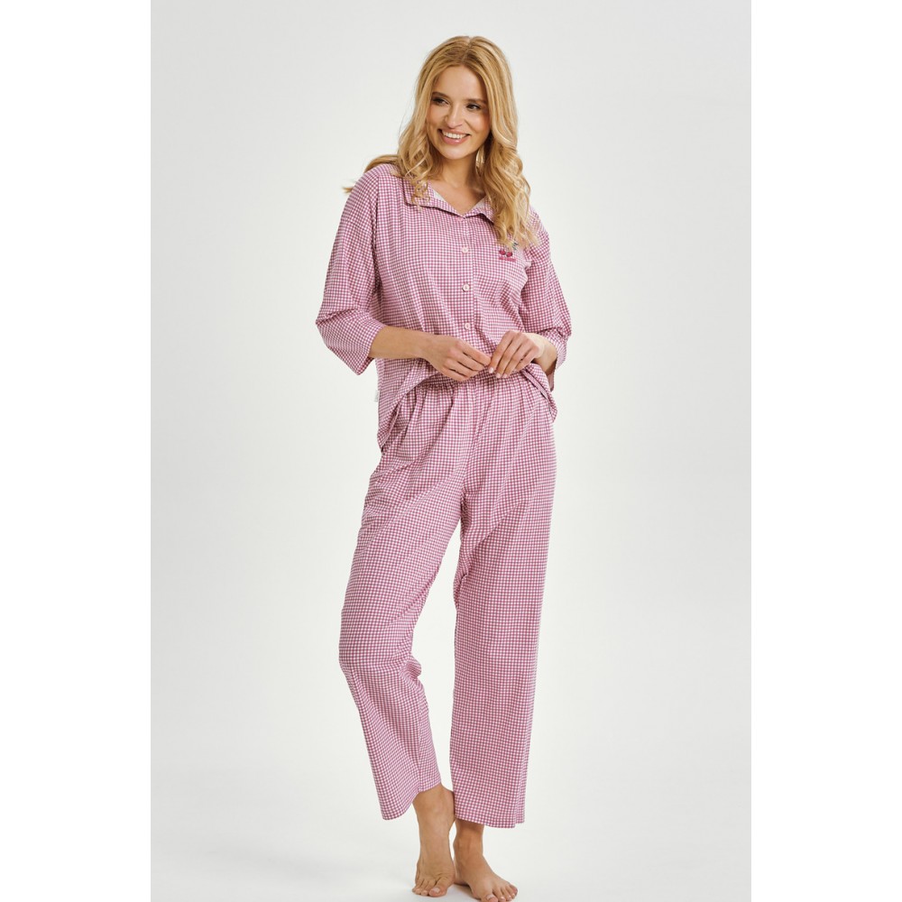 Жіноча довга піжама Jolie 3435 – це класика з сучасним відтінком, ідеальна для жінок, які цінують елегантність та комфорт. Виготовлена зі 100% високоякісної бавовни, вона м’яка та приємна на дотик, забезпечуючи чудовий комфорт під час сну. Класична картата сорочка має елегантний комір, застібку на ґудзиках та рукави 3/4, що надає їй відчуття сорочки. Штани прямого крою забезпечують комфорт та свободу рухів. Цей стильний комплект ідеально підходить для будь-якої пори року.