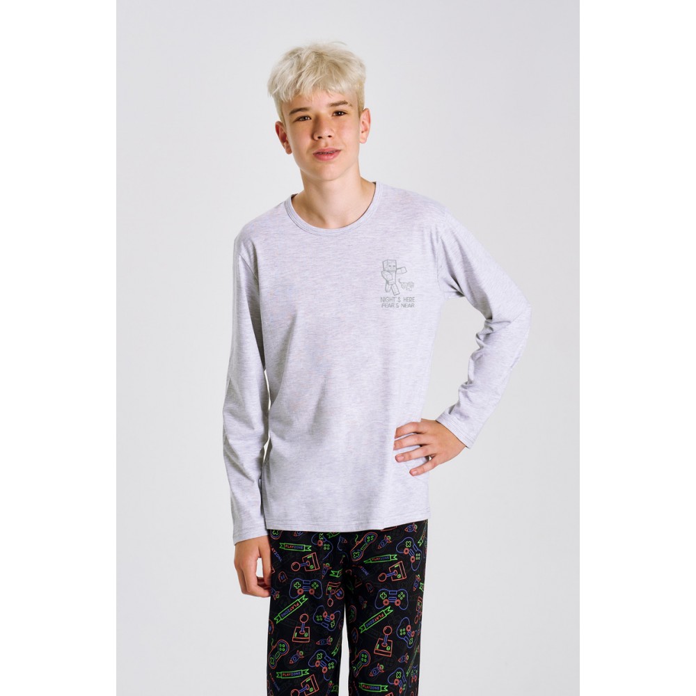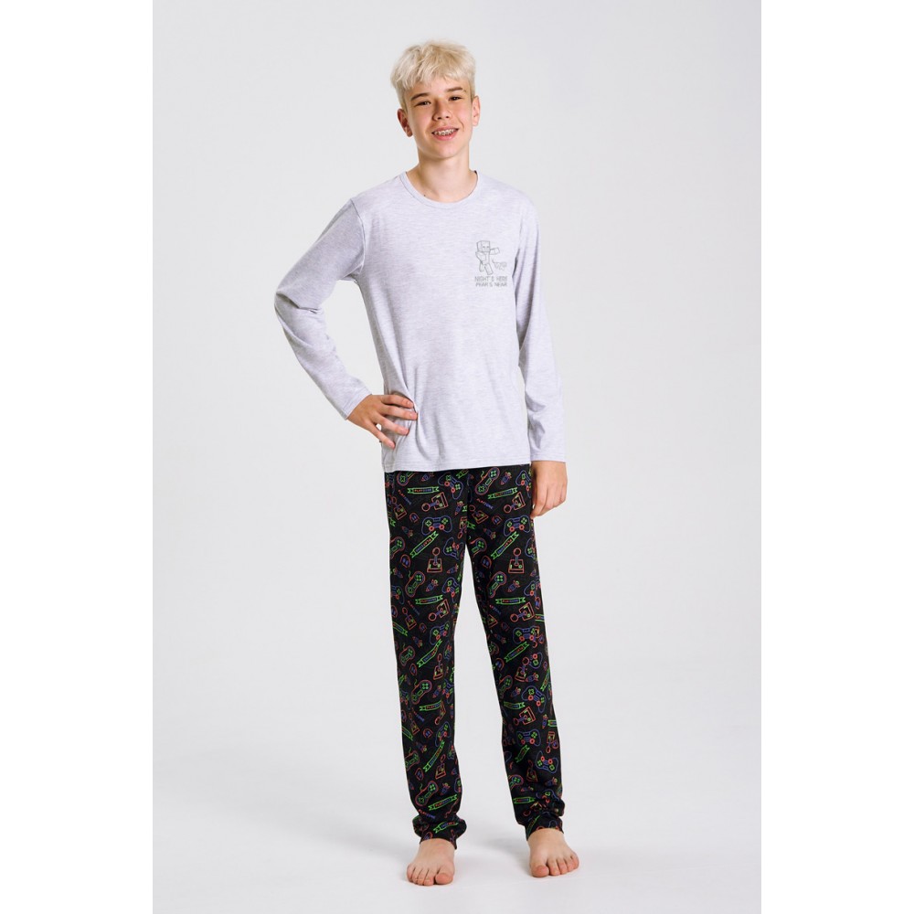 Піжама для хлопчика 3507 Julio від Taro – це зручний комплект, розроблений для підлітків. Виготовлена повністю з натуральної, дихаючої бавовни, вона м’яка на дотик і безпечна для шкіри. Футболка з довгими рукавами та круглим вирізом має привабливий принт спереду, що надає їй сучасного вигляду. Довгі штани мають цікавий візерунок, а еластичний пояс забезпечує свободу рухів і зручну посадку. Цей практичний і модний піжамний комплект доступний у розмірах 146–158, ідеально підходить як для сну, так і для щоденного відпочинку вдома.