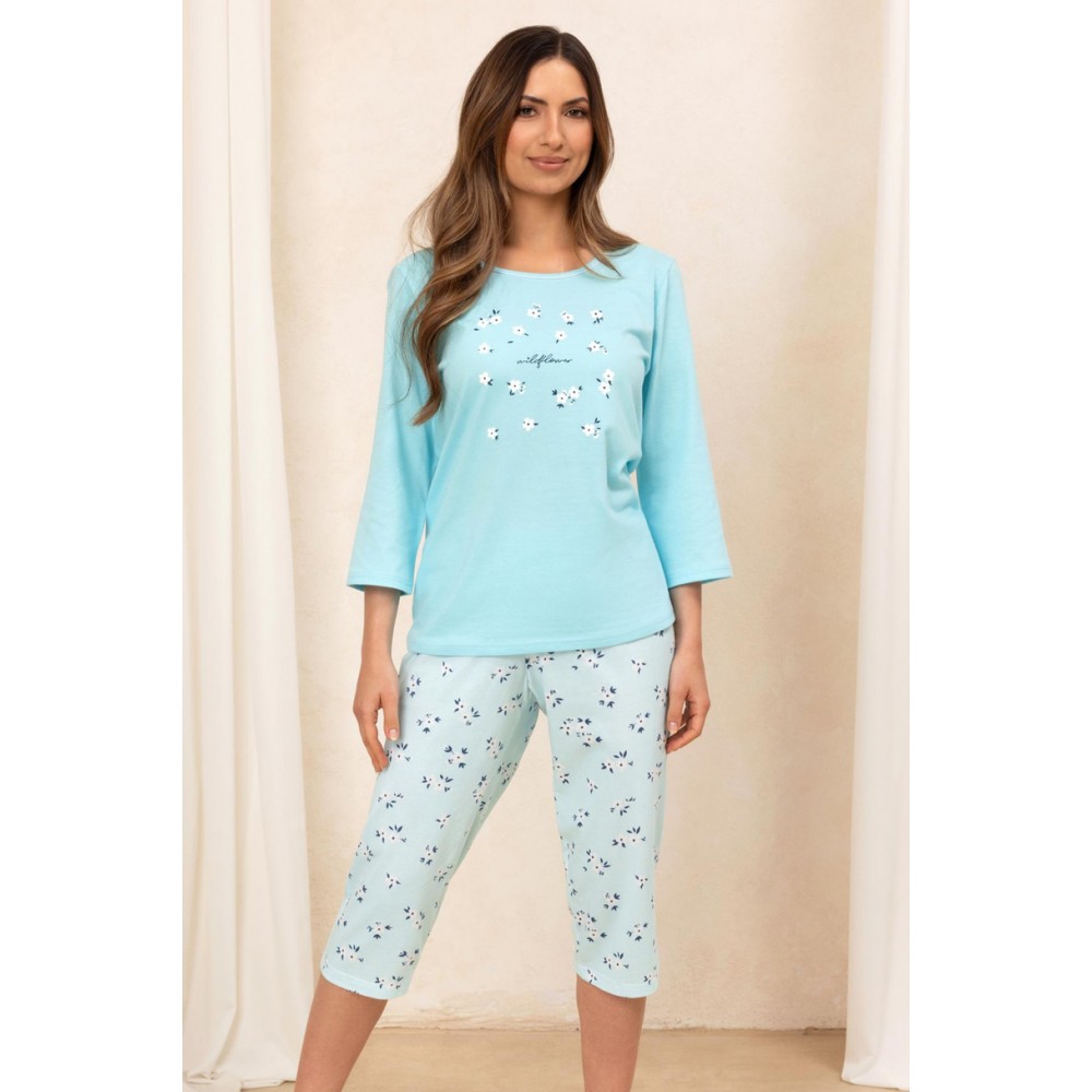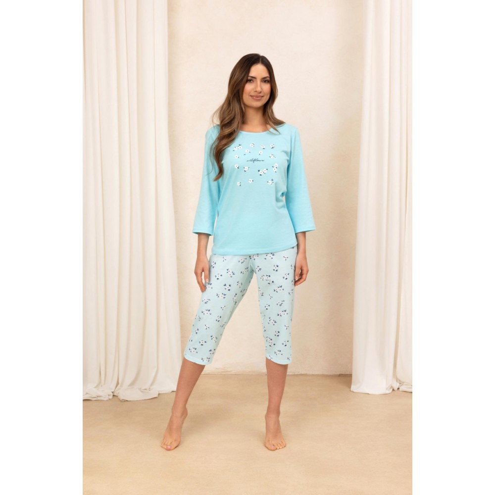 Жіночий піжамний комплект 707 BIG J/25 – це чарівний комплект, виготовлений із м’якої 100% бавовни, який поєднує комфорт та жіночний стиль. Однотонний топ з рукавами 3/4 прикрашений ніжним квітковим принтом спереду, що надає виробу ніжності та легкості. Низ комплекту складається з штанів 3/4 довжини, прикрашених повним квітковим принтом – ідеально підходить для теплих вечорів та ночей. Комплект упакований у поліетиленовий пакет – ідеально підходить для подарунка.