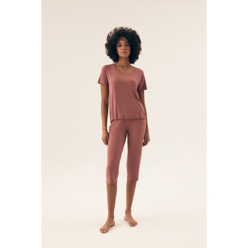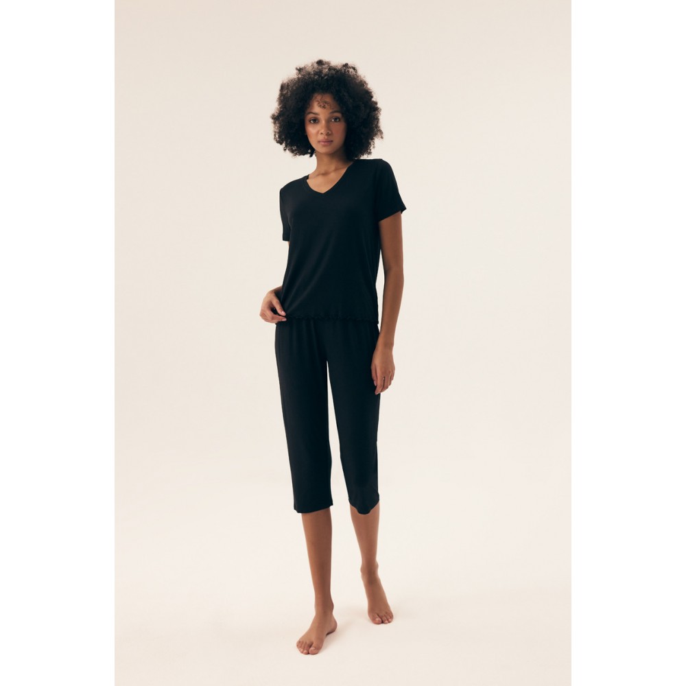 Відкрийте для себе винятковий комфорт та сучасний дизайн із жіночою піжамою NOVES 43023 SS25 . Ця модель була розроблена для жінок, які цінують комфорт та стиль, навіть під час сну. Виготовлена з високоякісної віскози з додаванням еластану, вона забезпечує м'якість, повітропроникність та еластичність – ідеальне поєднання для теплих ночей. Короткі рукави роблять цю піжаму ідеальною для весняного та літнього сезонів. Це ідеальний вибір для жінок, які хочуть почуватися комфортно та жіночно щовечора.