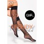 Виготовлена з ніжної та міцної пряжі товщиною Ці стильні шкарпетки до коліна щільністю 20 DEN поєднують елегантність з унікальним дизайном. Напівпрозора тканина, прикрашена тонким графічним мотивом, додає ніжкам легкості, а зручний еластичний пояс забезпечує ідеальну посадку без тиску.