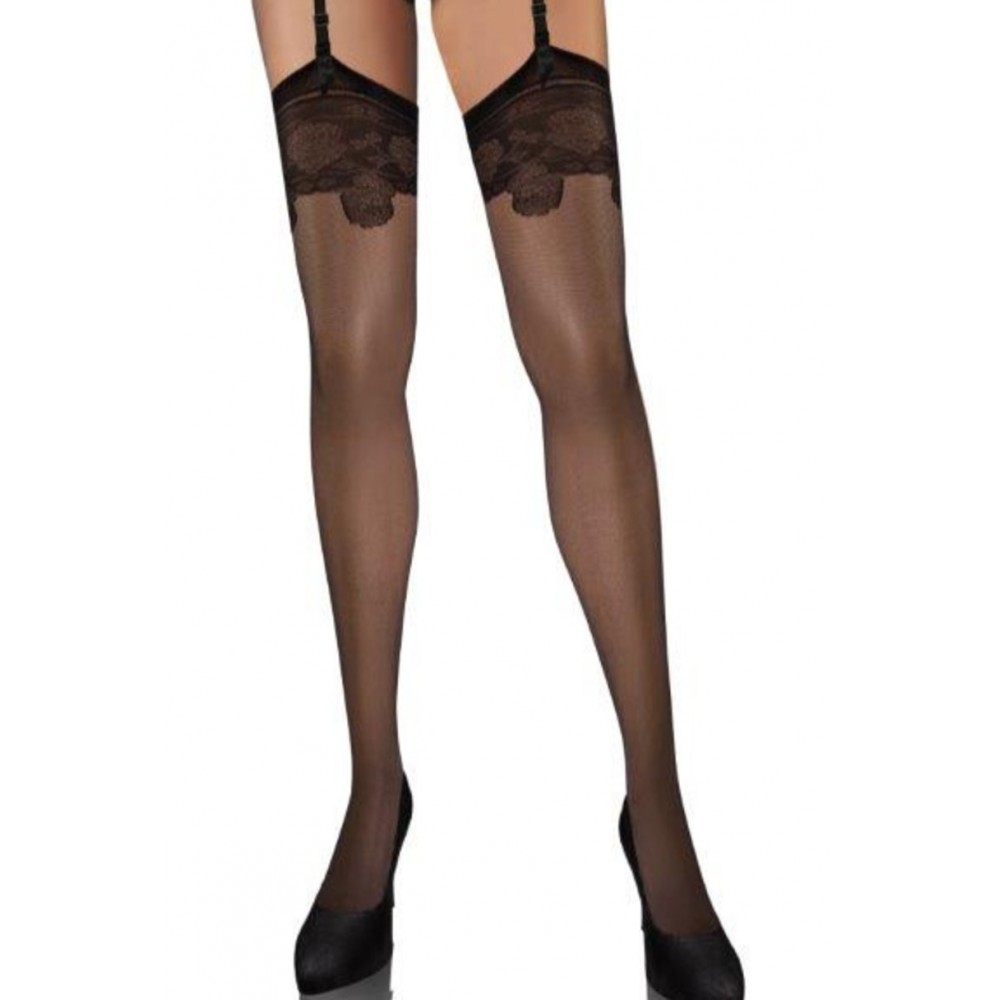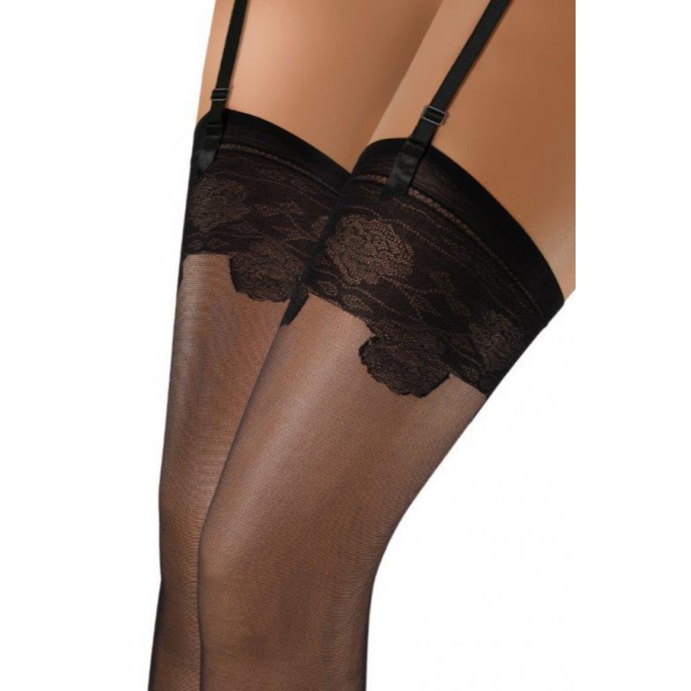 Жіночі панчохи з плетеної еластанової пряжі, матові з декоративним оздобленням зверху.