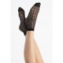 Skarpetki w delikatne ciemne bloki obwiedzione srebrną, błyszczącą nicią.
