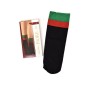 Eleganckie, czarne skarpetki z mocnymi akcentami w kolorze intensywnej zieleni i czerwieni na ściągaczu.
