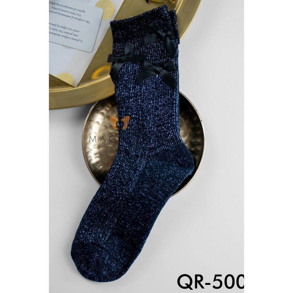 Skarpetki QR-5004 od Magnetis to połączenie elegancji, komfortu i modnego błysku. Wykonane z miękkiej bawełny z dodatkiem elastycznego poliestru i elastanu, zapewniają idealne dopasowanie do stopy, a ich połyskująca przędza przyciąga wzrok i nadaje stylizacjom wyjątkowego charakteru.Ozdobione trzema satynowymi kokardkami w kolorze dopasowanym do tkaniny, te skarpetki doskonale sprawdzą się jako efektowny dodatek do wieczorowych butów, botków, a nawet szpilek. Dostępne w kilku eleganckich wersjach kolorystycznych – od klasycznego czarnego po ciepły beż i czekoladowy brąz.