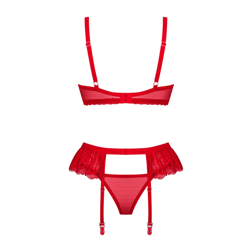 червоний комплект Chilisa, що складається з підв'язок, стрінгів і бюстгальтера