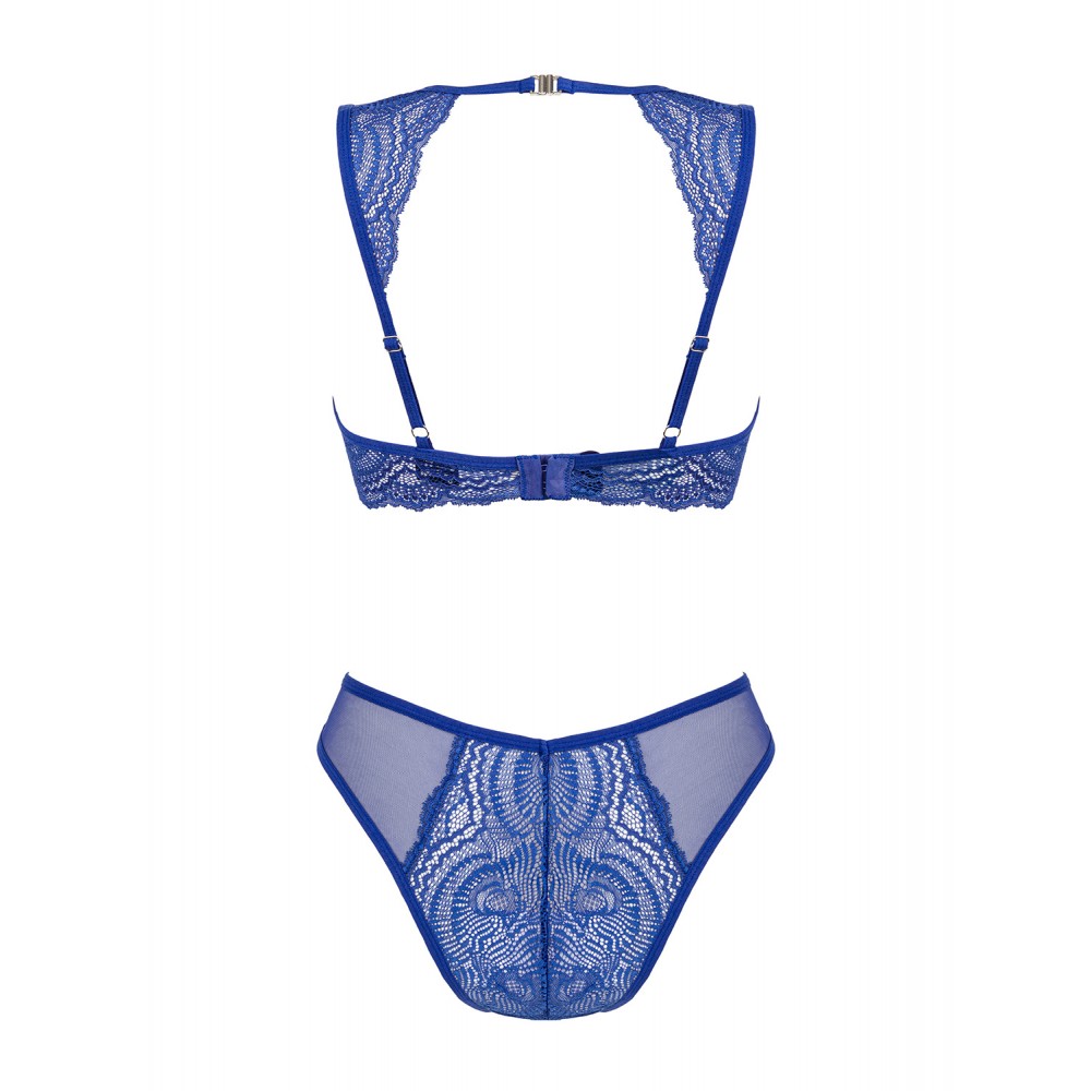 Комплект Giselia в унікальному енергійному відтінку кобальту. Унікальний дизайн бюстгальтера на кісточках забезпечить красивий вигляд грудей і ідеальну підтримку. Феноменальний виріз, прикрашений ювелірною підвіскою, приверне увагу, а елегантне, жіночне мереживо додасть шику та елегантності. Трусики з глибоким вирізом підкреслять фігуру і оптично стоншать талію. Ознайомтеся з деталями: синій кобальтовий комплект Giselia, бюстгальтер з глибоким вирізом і кісточками - гарний зовнішній вигляд і ідеальна підтримка грудей, ювелірна підвіска на лінії грудей - додає елегантності, зручні застібки на шиї і спині - регулюються під розмір боді, регульовані бретелі, жіночне мереживо - шик і шарм, сексуальні трусики підкреслюють талію і стегна, гнучкий і м'який матеріал (90% поліамід, 10% еластан).