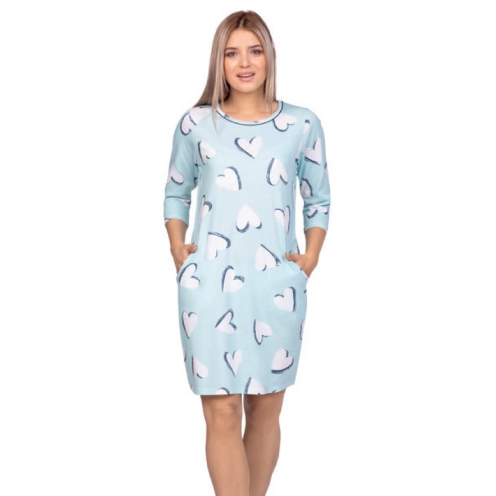 Жіноча сорочка з високоякісної бавовни. Рукав 3/4, довжина до коліна. Дизайн у формі серця. Склад: 100% бавовна.