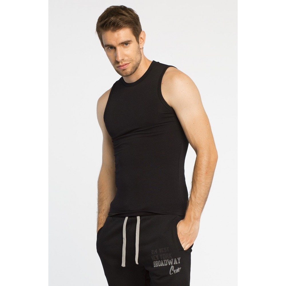 • Класична чоловіча безрукавка з м'якого бавовняного трикотажу. Вона ідеально прилягає до тіла, забезпечуючи комфорт. Скла..