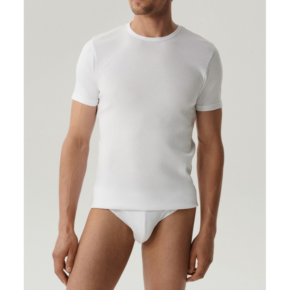 Класична чоловіча футболка з коротким рукавом. Гнучка та облягаюча. Незамінна легка повсякденна білизна, розроблена для активних людей, які цінують природний комфорт та зручність. Склад: 100% бавовна.