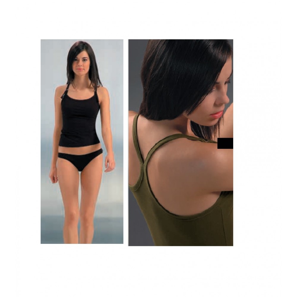 Жіноча футболка на тонких бретельках та ззаду. Виготовлена з комфортної бавовни (95%) та еластану (5%).