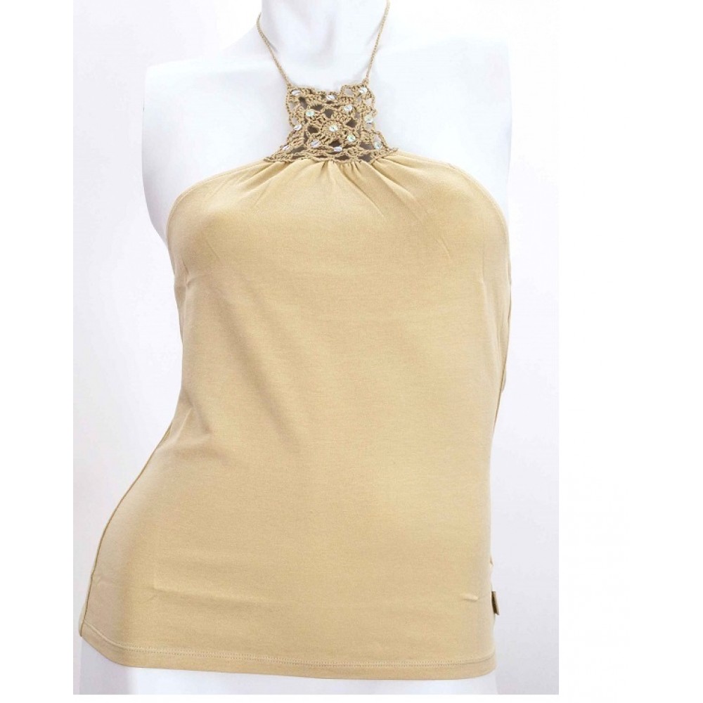 Жіноча футболка, що зав'язується на горловині, виготовлена з приємної на дотик бавовни (95%) з додаванням еластану (5%).
