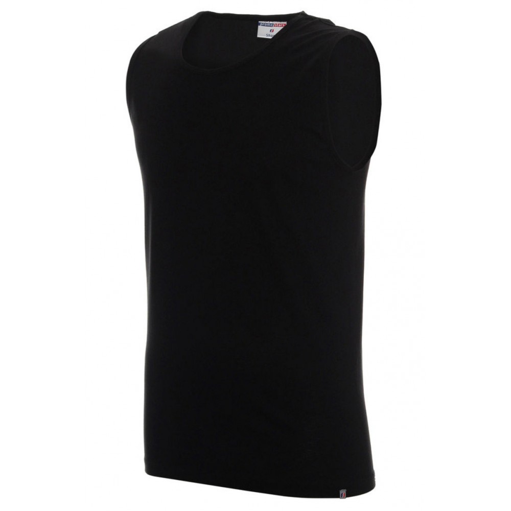 Чоловіча футболка без рукавів. Особливості: безшовні боки, подвійна строчка, ребристий виріз горловини та бретельки. Склад: 100% бавовна кільцевого прядіння. Вага: 150 г/м²