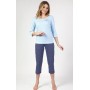 Жіноча бавовняна піжама з ніжним квітковим принтом. Верх має рукави 3/4 та круглий виріз. Штани з візерунком до литок. Склад: 100% бавовна.