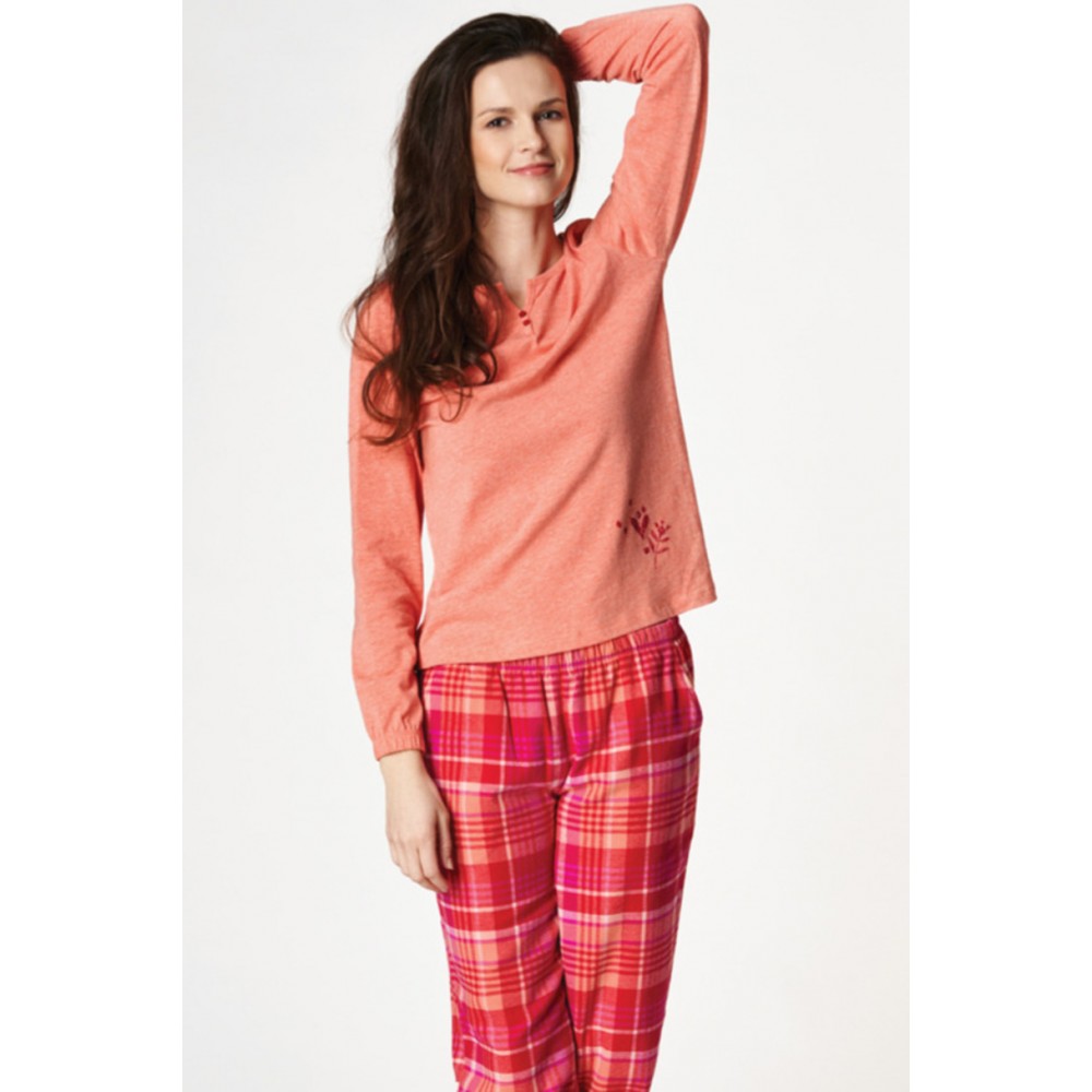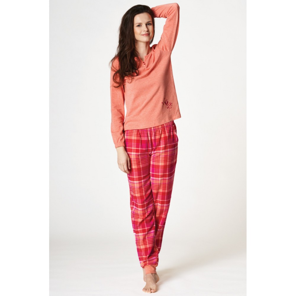 Жіноча піжама, бавовняна футболка з довгими рукавами, круглий виріз горловини, довгі бавовняні фланелеві штани, картатий візерунок