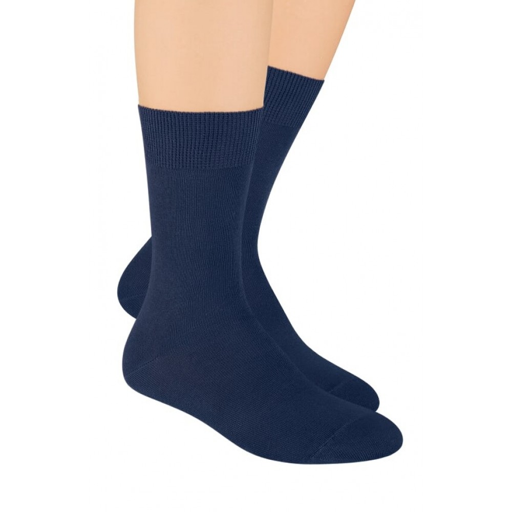 Класичні, гладенькі костюмні шкарпетки зі зручним, не тиснучим манжетом. Виготовлені з бавовни найви..