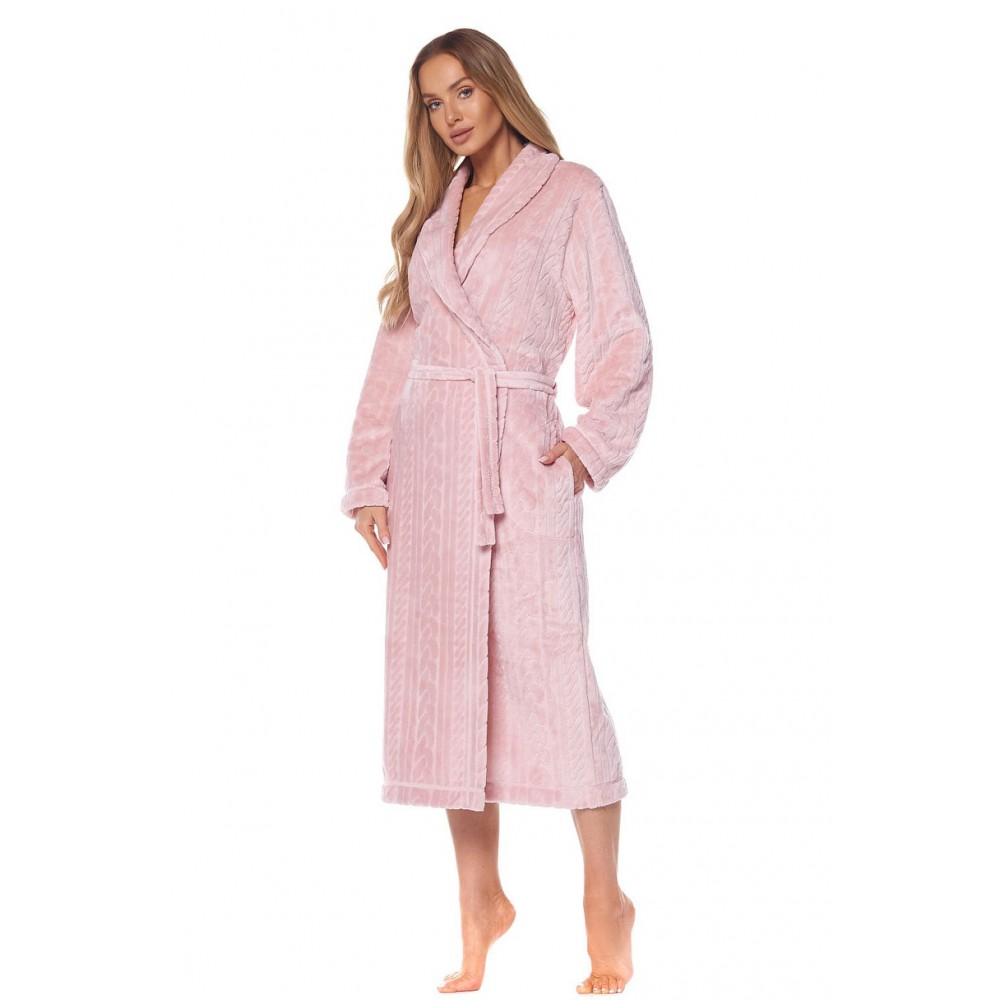 Жіночий довгий халат без капюшона, виготовлений з надзвичайно м'якої трикотажної тканини. Зав'язки на талії, кишені на рівні стегон .