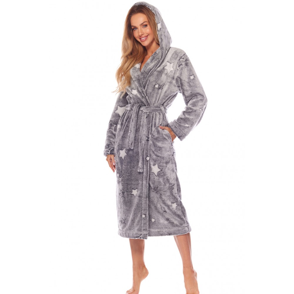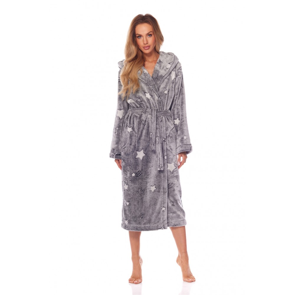 - Довгий жіночий халат з теплої, м'якої трикотажної тканини з капюшоном. Кишені на стегнах та зав'язка на талії. Склад: 10..