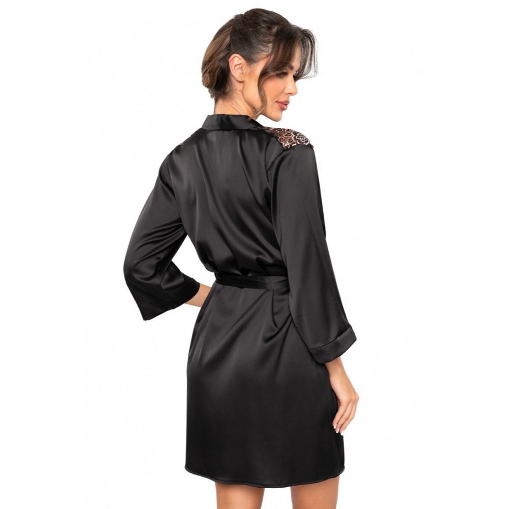 Підкресліть свою жіночність та елегантність за допомогою цього атласного пеньюара, який поєднує розкішний вигляд з винятковим комфортом. Виготовлений з м'якого, ледь помітного мерехтливого атласу, він чудово драпірується. Рукави довжиною сім восьми дюймів забезпечують свободу рухів та легке відчуття, ідеально підходять для вечірнього відпочинку або ранкових ритуалів. Яскраве квіткове мереживо прикрашає плечі, додаючи чуттєвості та елегантності. Зав'язка на талії дозволяє відрегулювати пеньюар відповідно до вашої фігури, підкреслюючи талію та додаючи стильного вигляду. Він ідеально поєднується з піжамою або сорочкою з тієї ж лінії, створюючи цілісний, розкішний ансамбль, який радуватиме вас з кожним кроком.