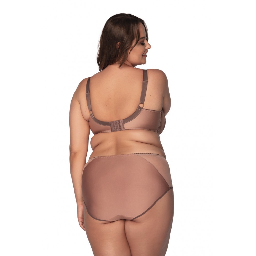 Спеціально розроблений для жінок з великими грудьми, цей бюстгальтер має чашку, обтягнуту вишитою тканиною. Тасьма виготовлена з еластичної, однорідної мікрофібри. Жорстка частина чашки з'єднана з бретельками, що дозволяє бюстгальтеру ідеально підтримувати та підкреслювати форму грудей.