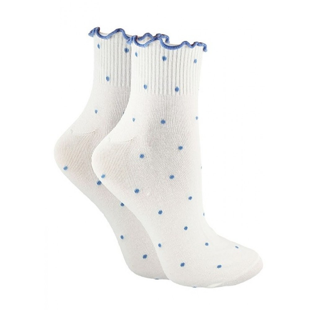 Жіночі шкарпетки з високоякісної бавовняної суміші. Оригінальний та модний дизайн, плоскі шви та еластичні декоративні манжети. Склад: 80% бавовна, 15% поліамід, 5% еластан.